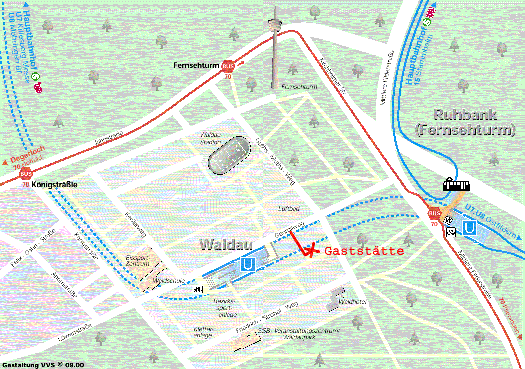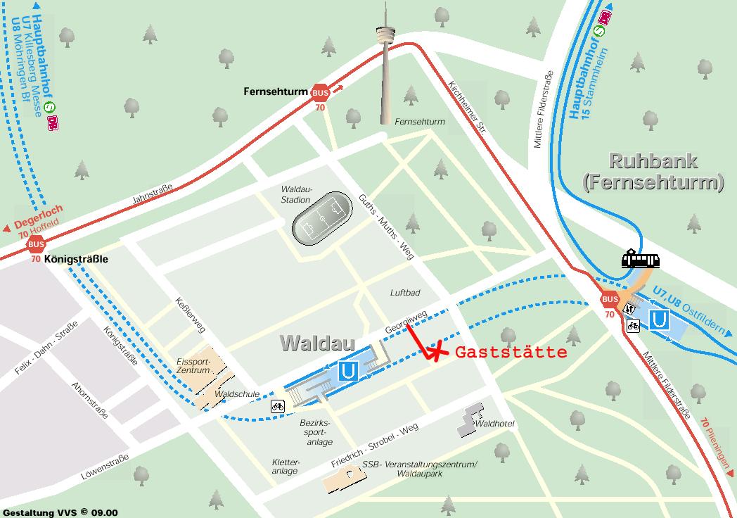 Waldau in Stuttgart Degerloch statt und ist per Auto und U-Bahn